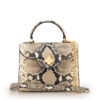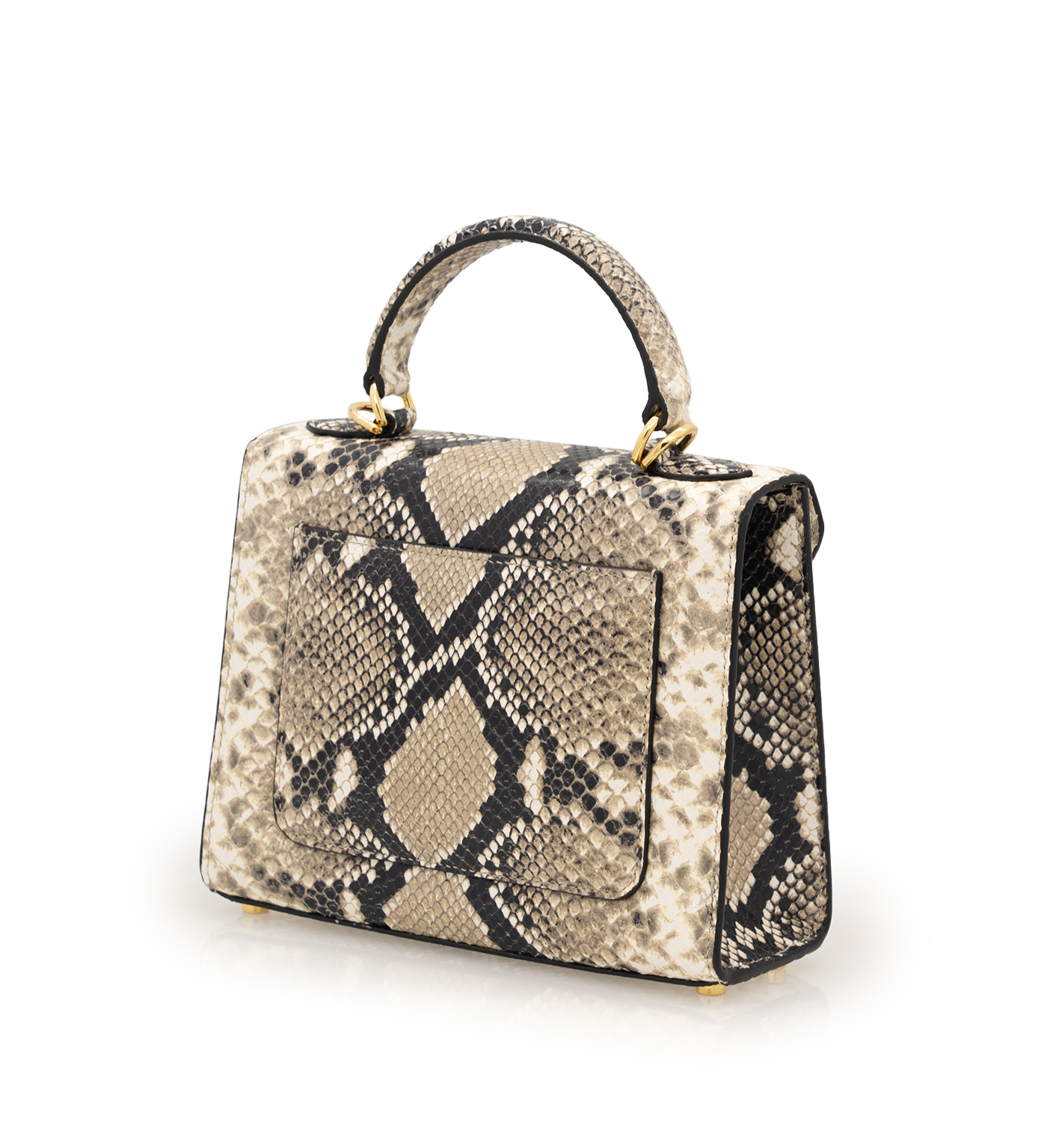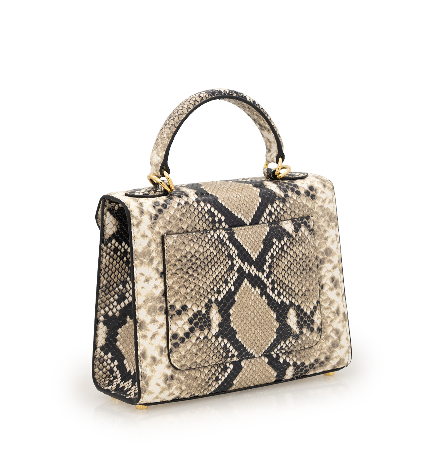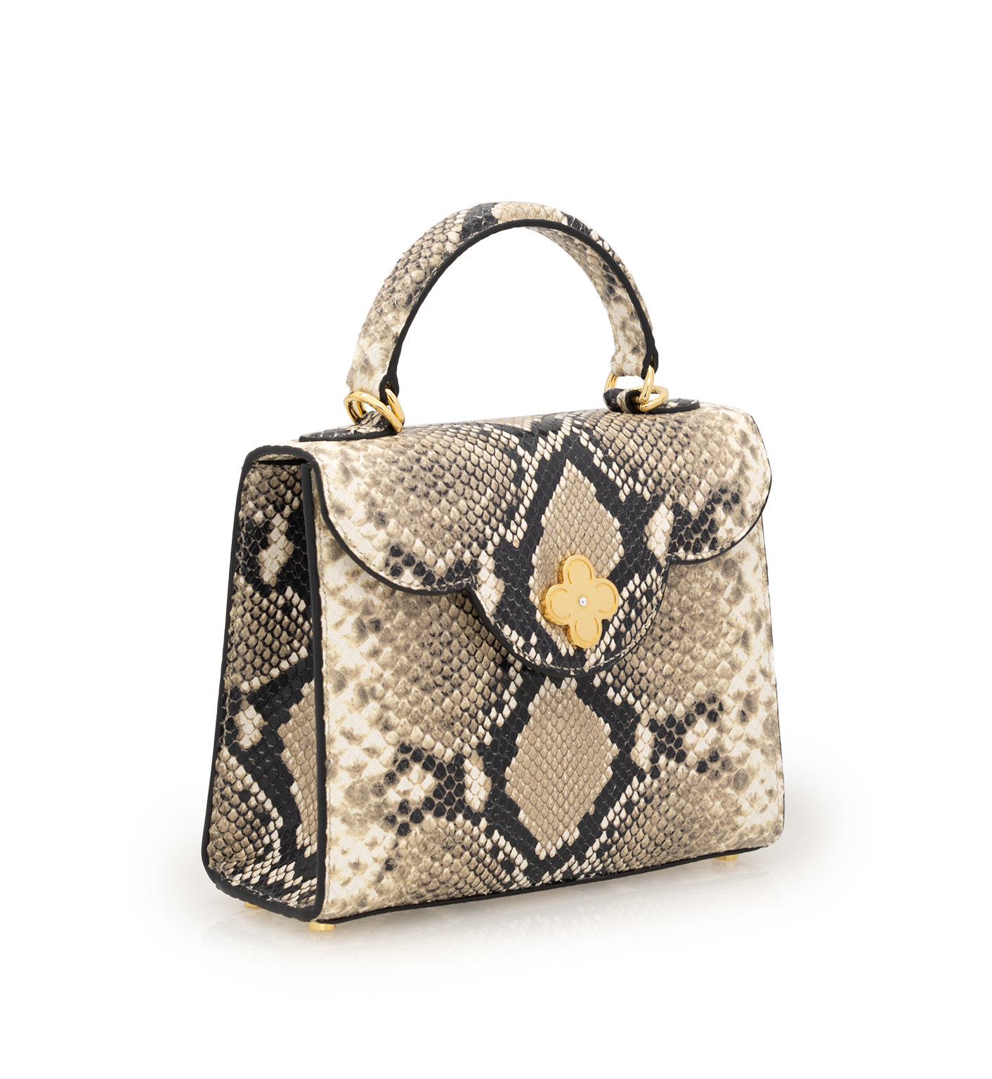 Cardinal signature “First Lady small” top handle bag is perfect accessory to wear cross seasons. This bag is perfect for daily use, romantic meetings or meeting with friends. This timeless bag has been made in Milan by experted artisans in clean elegant shape. It is handcrafted from smooth leather stone shadow color with, detailed with a flower logo in gold hardware embellished with rhinestone. The top handle is comfortable for hand or elbow carry and a removable chain for over-the-shoulder wear. The bag is roomy enough for your essentials like small wallet, phone, keys and make up. A magnetic closure keeps your essentials safe, there is one internal pocket. This chic accessory will make a lady look more cute but so elegant at the same time.